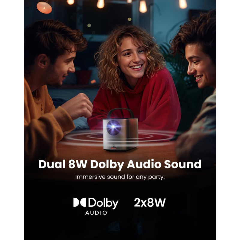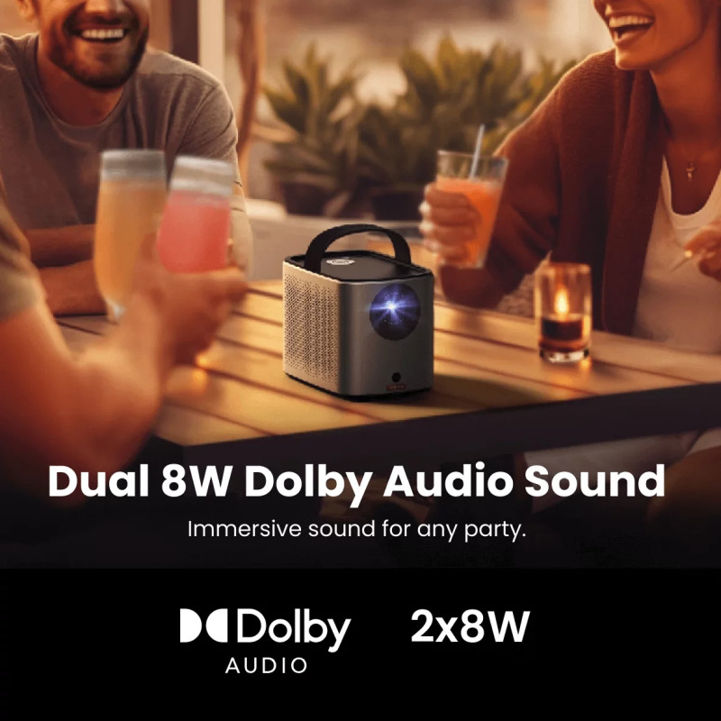 – S dual 8W Dolby Audio, možete uživati ??u impresivnom zvuku filmova, kao i koristiti projektor kao prijenosni zvučnik na zabavama.