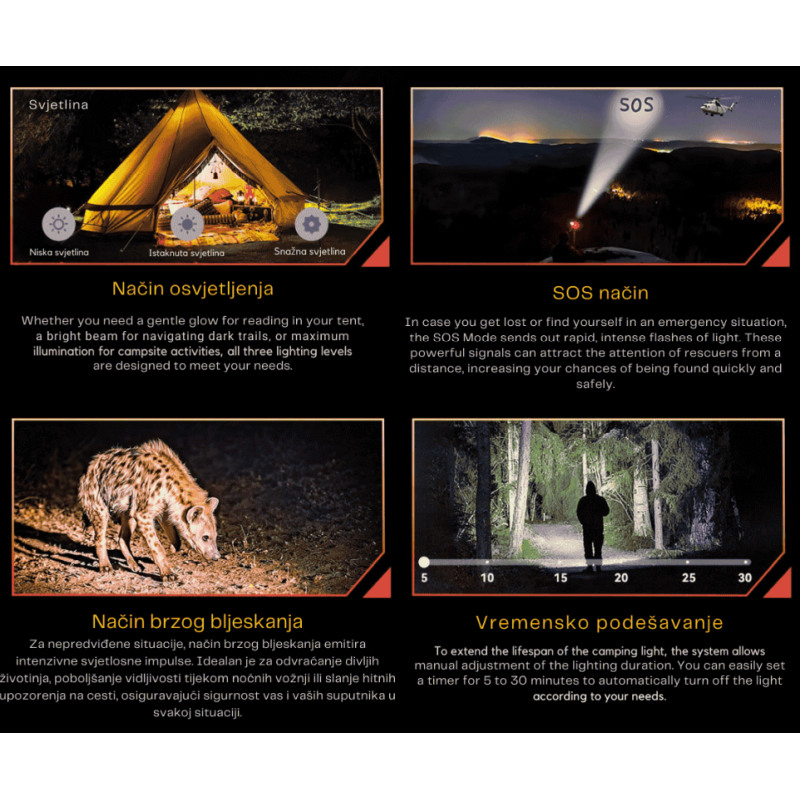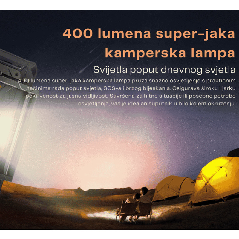 – Blackview Active 10 Pro opremljen je super-jakom kamperskom lampom od 400 lumena, koja pruža snažno osvjetljenje u svakoj situaciji. S više načina rada, uključujući standardno osvjetljenje, SOS signalizaciju i brzo bljeskanje, idealan je za kampiranje, noćne aktivnosti i hitne situacije. Bez obzira trebate li nježnu svjetlost za čitanje ili snažan snop za osvjetljavanje puta, Active 10 Pro osigurava vrhunsku vidljivost i sigurnost.