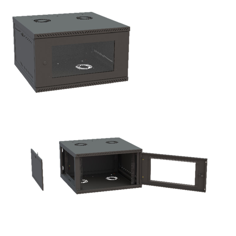 IPCOM 19″ zidni ormar 12U – 600×450×615mm, staklena vrata, crni (2/2)