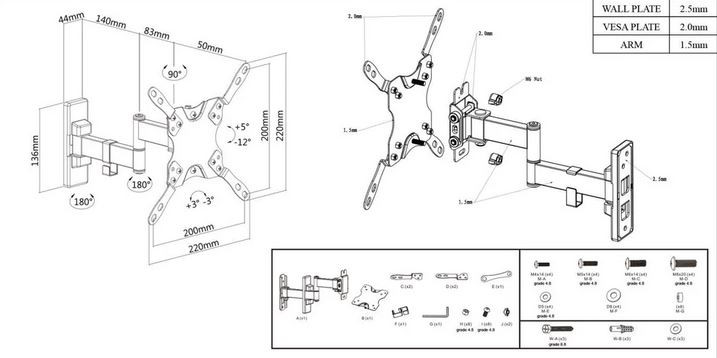 Manhattan TV nosač zidni 13″-43″ do 20kg, crni