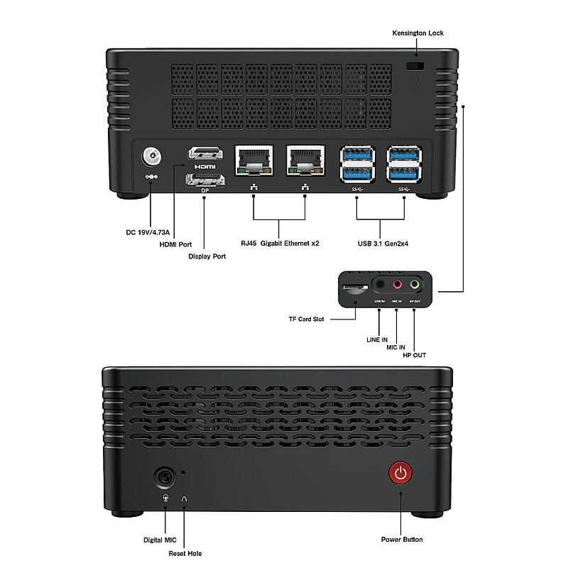 – EliteMini X500 supports DIY configuration, including RAM, NVMe SSD, SATA SSD, HDD, and TF Card