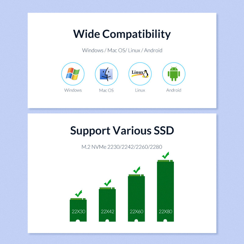 – Supported Devices: 2230/2242/2260/2280 M.2 SSD