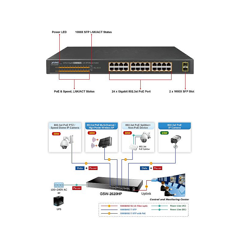 * Per port 52V DC, 600mA. max. 30 watts (IEEE 802.3at)