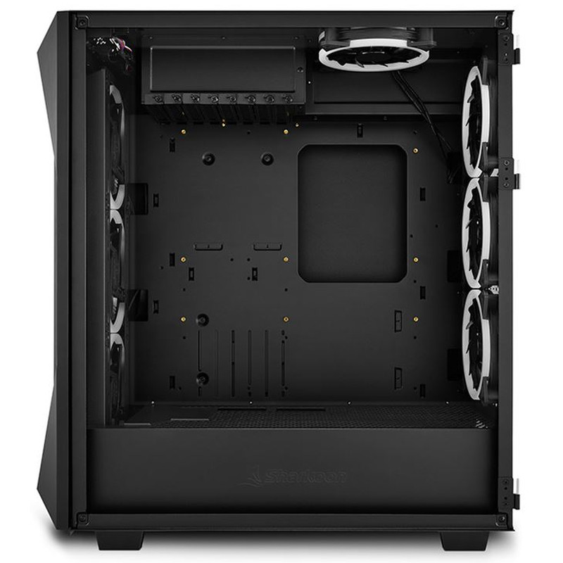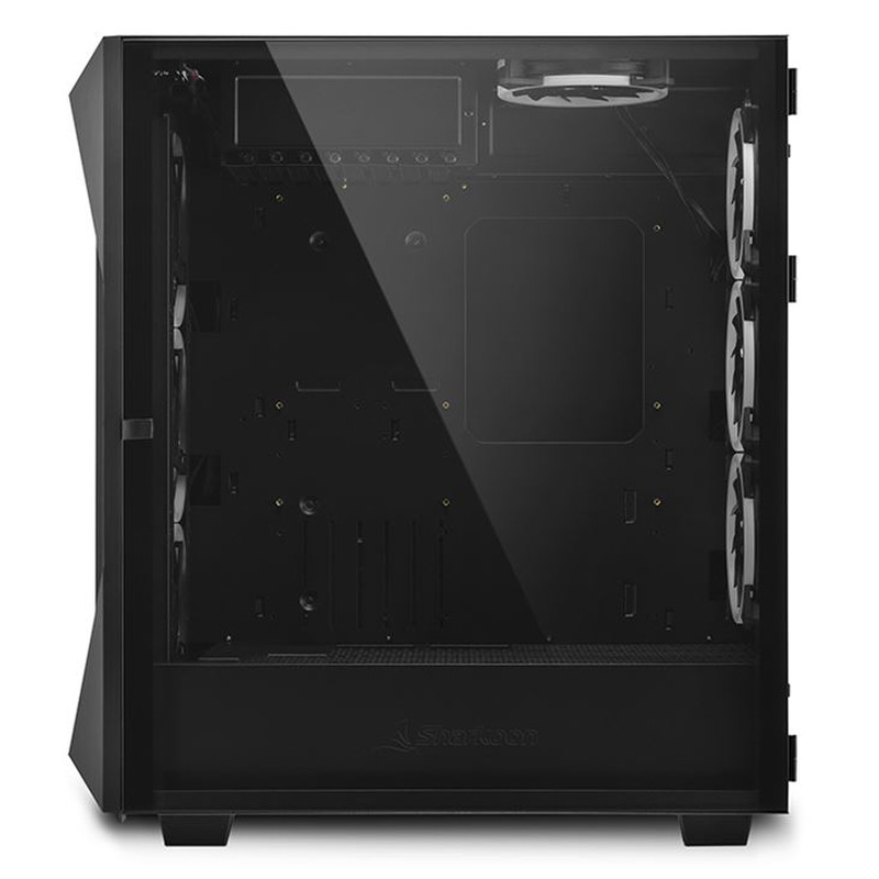 – The REV300 provides a deep insight of the inside of the case and the installed hardware components. A tempered glass side panel on the right-side of the case allows the system to be shown to its full. The side panel is conveniently rested on hinges at the rear, making it easy to open and close. A magnetic closure ensures that everything is securely shut. Screws or other distracting elements are thus completely banned from view and the hardware components are easily accessible. Together with the illumination from a total of seven RGB LED fans, the presentation is made perfect.