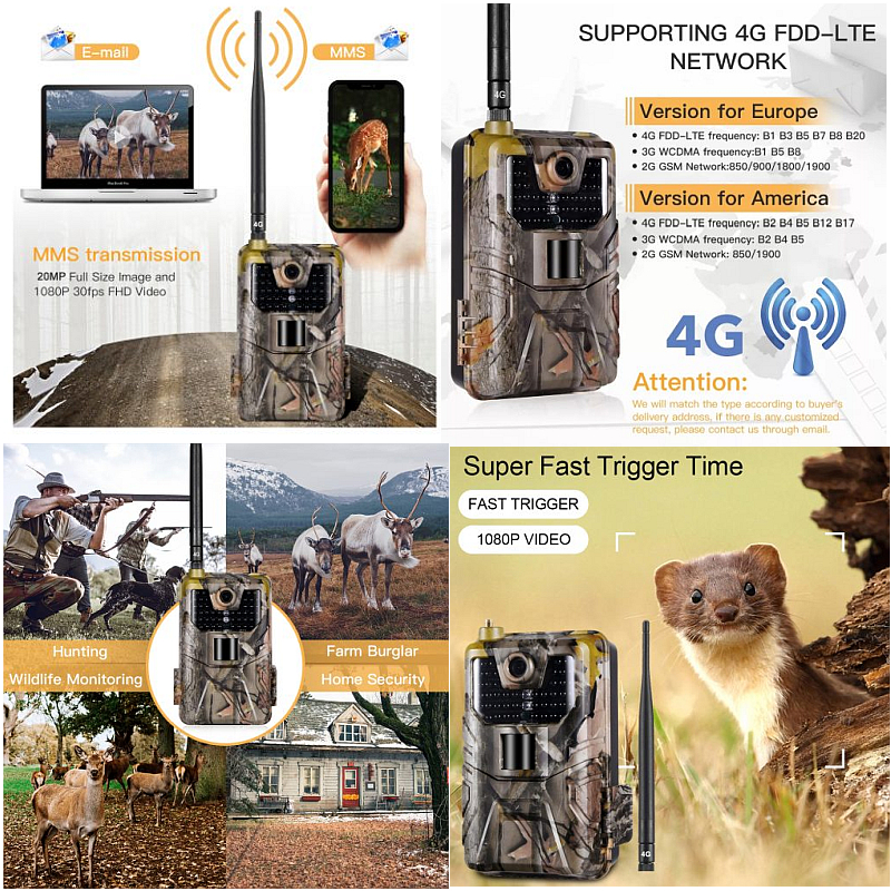 – Wireless trail camera is compatible with all network mobile SIM card , complete the transfer in less than 100 seconds so you can instantly recognize the image from the camera