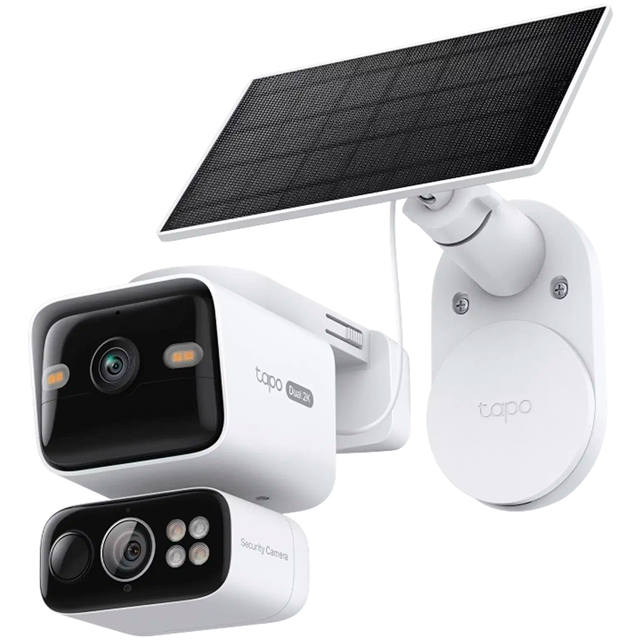 Tapo C645D Solar Powered Dual 2K Lens Pan/Tilt 360 Security Camera Kit, Resol. 2K 3MP (2304 x 1296 px), Live View, Night Vision, Built-in Microphone and Speaker, MicroSD Slot on Camera (Up 512 GB), Lith.-ion Battery, Solar Panel Max Char. Volt. 5.2V