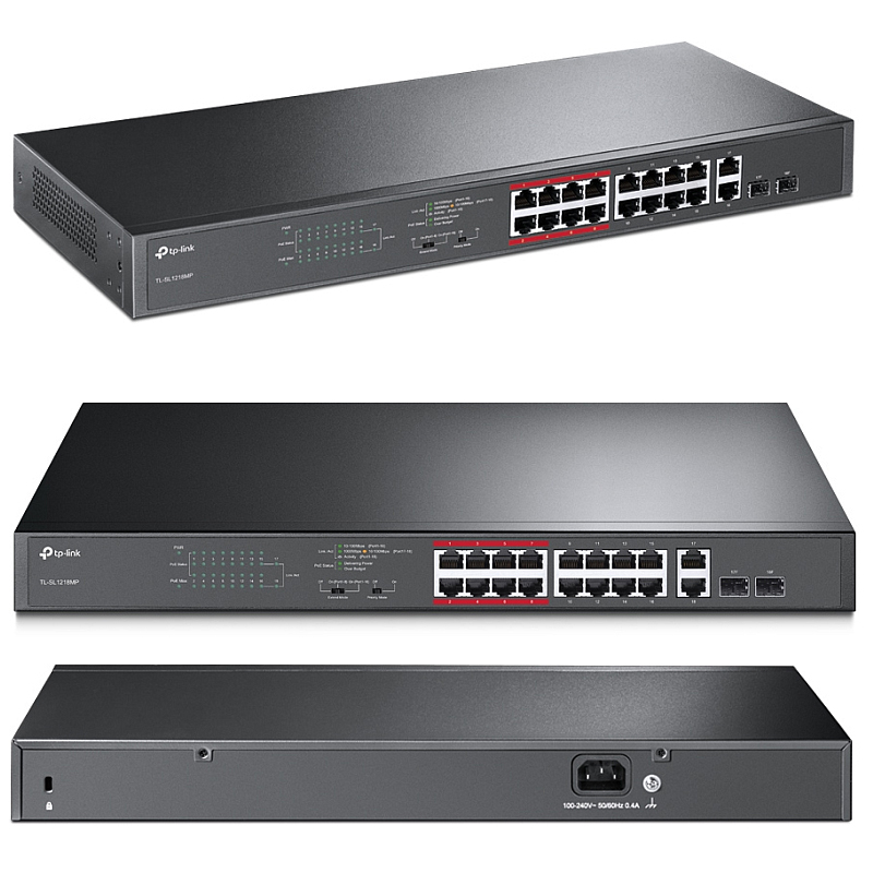 – TL-SL1218MP is a special designed PoE switch for IP surveillance applications