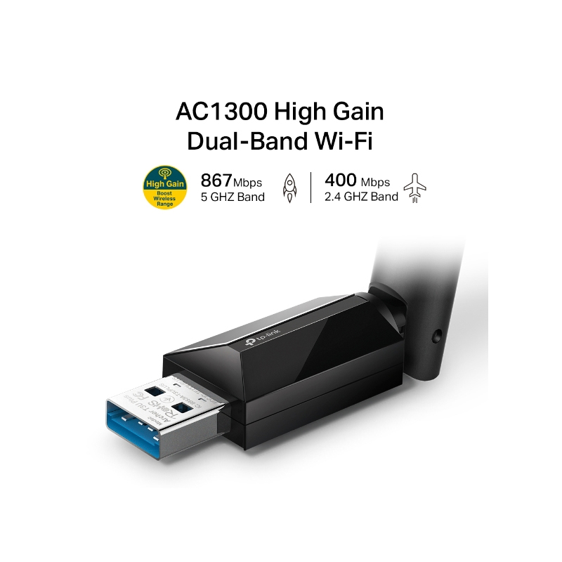 – Package Contents: AC1300 High Gain Wireless Dual Band USB Adapter, Quick Installation Guide, Resource CD