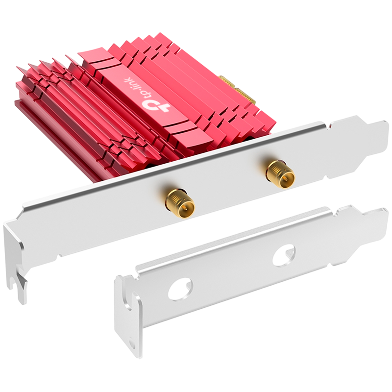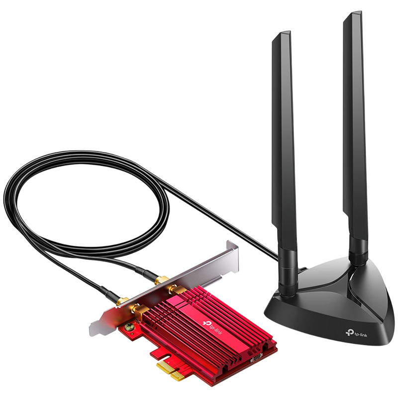 TP-LINK AXE5400 Wi-Fi 6E Bluetooth 5.3 PCIe Adapter, up to 2402 Mbps (6 GHz) + 2402 Mbps (5 GHz) + 574 Mbps (2.4 GHz), IEEE 802.11a/b/g/n/ac/ax, 2× High-Gain Tri-Band Antennas