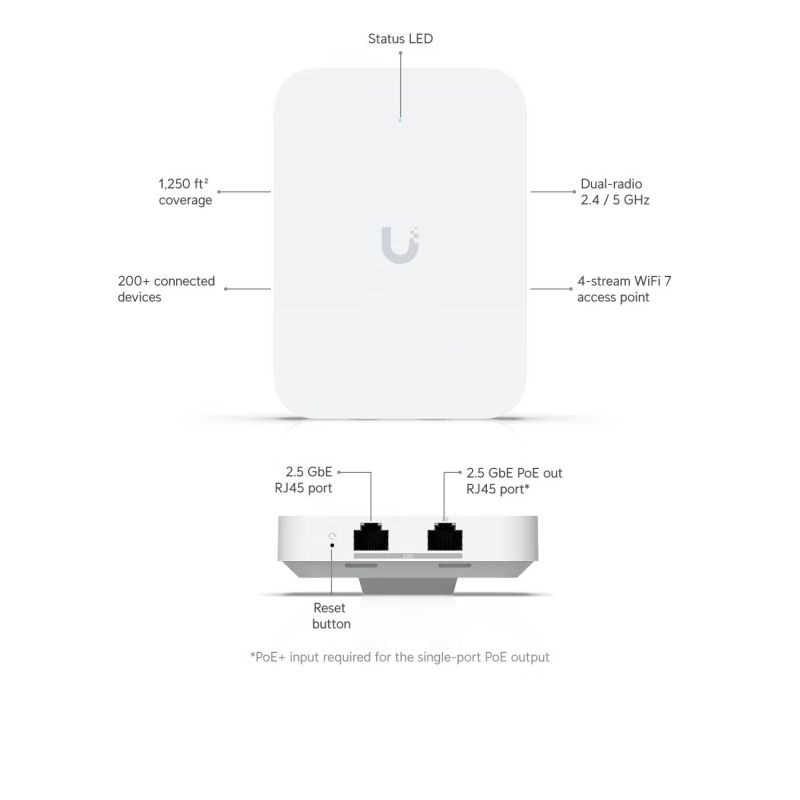 – Zidna WiFi? 7 pristupna točka s 4 prostorna toka i integriranim 2,5 GbE PoE preklopnikom dizajnirana za ugostiteljska okruženja.