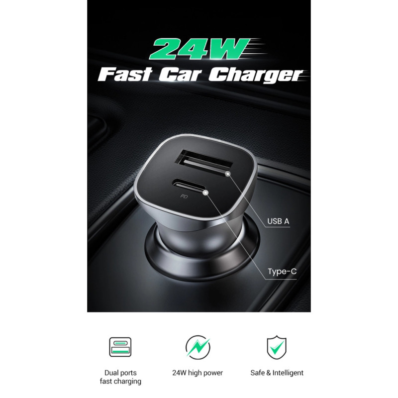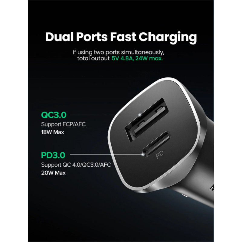 Ugreen brzi auto punjač USB-A / USB-C 30W PD PPS sivi (CD130)