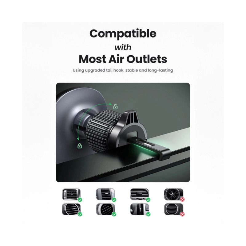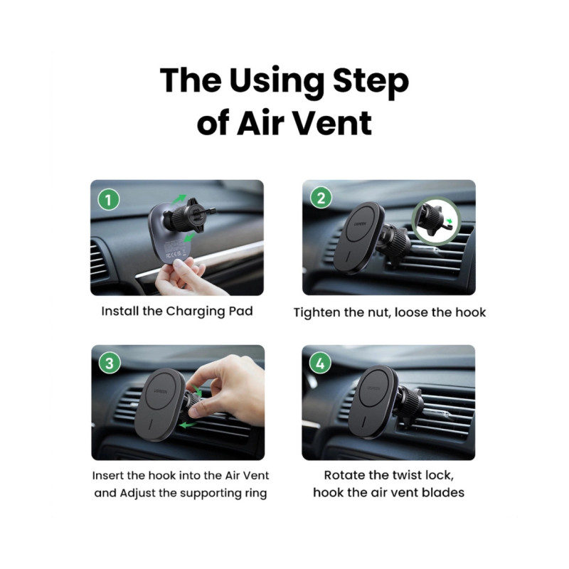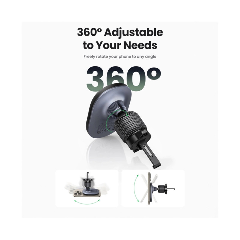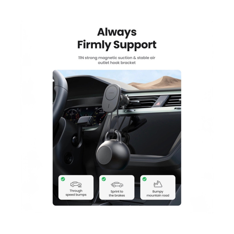 – MagSafe Ugreen CD345 2-u-1 indukcijski auto punjač za kokpit/prozor/rešetku – crni
