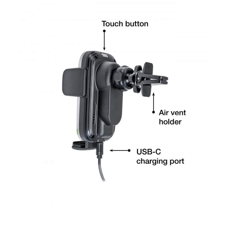 – The fast-charging phone holder is easy to use, secure, and convenient. Choose between installing the holder into your car’s air vent or fitting it to the dashboard or window via the suction pad.